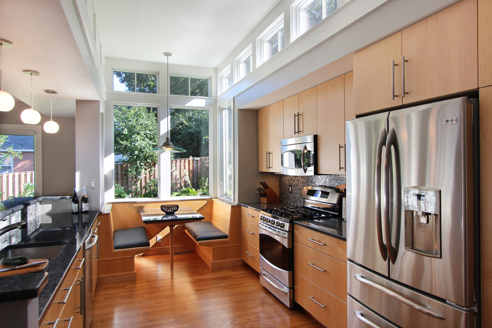 Выбирайте многофункциональную мебель. Например, кухонные столы с встроенными полками, которые могут быть использованы как место для хранения, или столы-островки, которые могут служить для готовки, приема пищи и хранения.